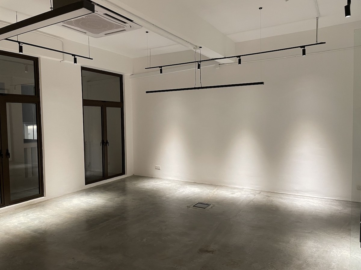 We rented a three-bedroom house and turned two rooms into our workspace.