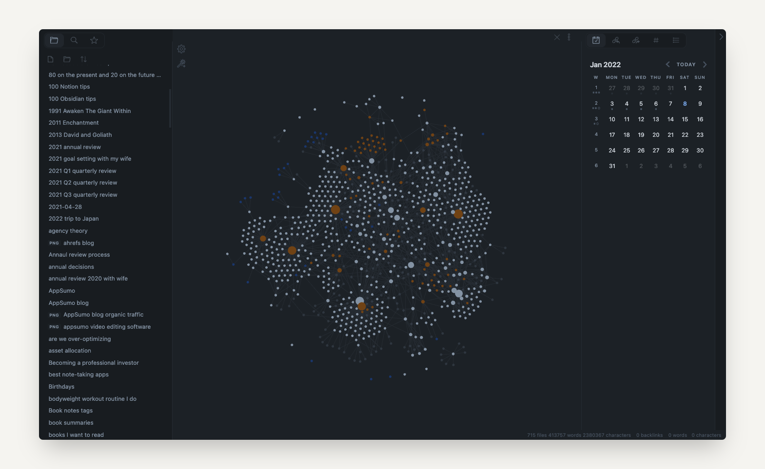Thanks to Nat Eliason, I stumbled across Roam Research in 2020 and learned more about personal knowledge management. With that, I found Obsidian and liked it more as a Roam Research's alternatives.